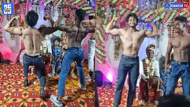 तुम्ही आतापर्यंत अनेक लग्नांना उपस्थित राहिला असाल. तिथल्या सजावटी आणि इतर गोष्टींनी तुमचे लक्षही वेधून घेतले असेल, पण तुम्ही कधी लग्नात (Marriage) वरमाला समारंभानंतर लोकांना त्यांची बॉडी दाखवताना पाहिले आहे का? होय, असे विचारल्यावर तुम्हाला आश्चर्य वाटले ना... पण व्हायरल व्हिडिओमध्ये असेच काहीसे दिसत येत आहे. व्हिडिओमध्ये असे दिसते की, वधू आणि वर त्यांच्या जागी बसले असून त्यांच्यासमोर तीन बॉडीबिल्डर मुले त्यांची बॉडी दाखवत आहेत. तर स्टेजखाली उभे असलेले लोक त्यांचा व्हिडिओ बनवत आहेत. त्यापैकीच एकाने हा व्हिडिओ व्हायरल केला.
