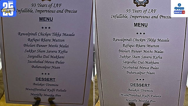 पाकिस्तानकडून नुकसान न झाल्याचा दावा करण्यात आला असला तरी, भारतीय सैन्य कारवाईत झालेल्या नुकसानीचे व्हिडिओ आणि फोटो पुरावे वारंवार समोर आले आहेत. याशिवाय पाकिस्तानमध्ये झालेल्या नुकसानीचे सॅटेलाईट इमेज देखील समोर आल्या होत्या. दरम्यान, आता भारतीय वायुसेनेच्या कार्यक्रमात तयार करण्यात आलेला मेनू चांगलाच व्हायरल झाला असून, नेटकरी पाकिस्तानला चांगलेच रोस्ट करत आहेत