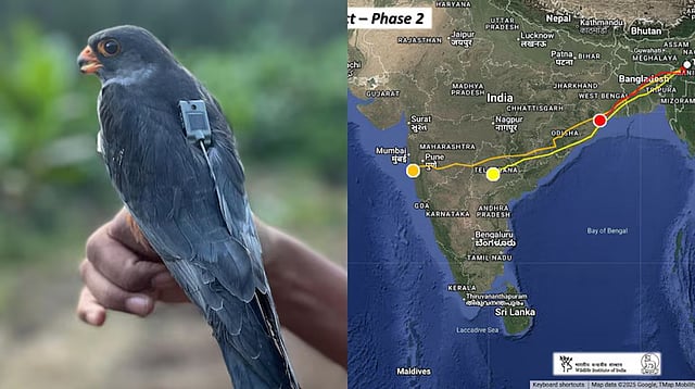Amur Falcon Migration: मणिपूरच्या आकाशात सध्या एका शांत पण थरारक प्रवासाची सुरुवात झाली आहे. वन्यजीव शास्त्रज्ञांनी टॅग केलेल्या तीन अमूर फाल्कन पक्ष्यांनी त्यांच्या लांबच्या स्थलांतरासाठी पश्चिम दिशेकडे भरारी घेतली. हा प्रवास त्यांच्या नैसर्गिक प्रेरणेने सुरु झाला असून तो त्यांच्या शारीरिक क्षमतेची एक कसोटी ठरणार आहे. वन्यजीव संस्था यांच्या महत्त्वाच्या संशोधन प्रकल्पाचा भाग म्हणून संशोधकांनी 11 नोव्हेंबर रोजी अपपांग, आलांग आणि आहू या तीन फाल्कन्सना टॅग केले.