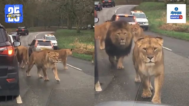 Viral Lion Video: सोशल मीडियावर (Social Media) वन्यजीवनाशी (Wildlife) संबंधित व्हिडिओ नेहमीच व्हायरल होत असतात. नुकताच असाच एक व्हिडिओ समोर आला आहे, ज्यामध्ये सिंहांचा कळप (Pride of Lions) भर रस्त्यावर मोकळेपणाने फिरताना दिसत आहे. या दृश्याने केवळ वाहतूकच थांबली नाहीतर ते पाहणाऱ्यांचा श्वासही थांबला. हा व्हिडिओ इतका धक्कादायक आहे की, लोक तो पाहून थक्क झाले असून, सोशल मीडियावर त्याची जोरदार चर्चा सुरु आहे.