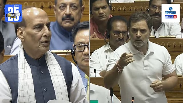 Rajnath Singh vs Rahul Gandhi: लोकसभेत 'ऑपरेशन सिंदूर' या विषयावर सोमवारी (28 जुलै) चर्चेला सुरुवात झाली. चर्चेला सुरुवात होताच सत्ताधारी आणि विरोधक यांच्यात जोरदार घमासान पाहायला मिळाले. याचदरम्यान, संसदेत संरक्षण मंत्री राजनाथ सिंह (Rajnath Singh) यांनी भारतीय सैन्याच्या (Indian Army) शौर्याबद्दल प्रशंसा करताना सर्व खासदारांना (Parliamentarians) टाळ्या वाजवण्याचे आवाहन केले, तेव्हा काँग्रेस नेते राहुल गांधी (Rahul Gandhi) यांनी टाळ्या वाजवल्या नाहीत आणि हात बाकावर ठेवून बसले, असा दावा करणारा एक व्हिडिओ सध्या सोशल मीडियावर व्हायरल होत आहे. या घटनेवरुन राहुल गांधींवर 'देशद्रोही' असल्याचा आरोप करत तीव्र टीका केली जात आहे.