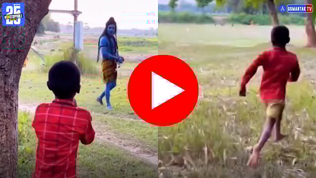 सोशल मीडियावर सध्या एक भन्नाट व्हिडिओ व्हायरल होत असून लोक हसता-हसता पोट धरून बसले आहेत. या व्हिडिओमध्ये नकली भगवान शंकर हातात त्रिशूळ घेऊन एका लहान मुलाच्या मागे धावताना दिसत आहेत. हा प्रकार पाहून उपस्थित लोकांबरोबरच व्हिडिओ पाहणारे नेटकरी अक्षरशः हसू लागले आहेत.