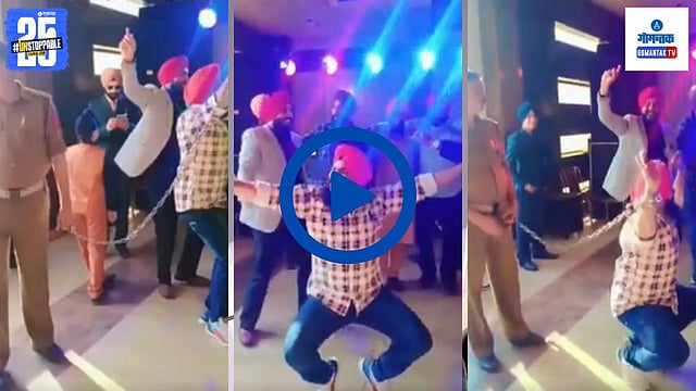 एक व्यक्ती निळ्या रंगाची जीन्स, पायात बूट घालून पंजाबी गाण्यावर थिरकताना दिसत आहे. विशेष म्हणजे त्याच्या एका हातात बेड्या ठोकलेल्या असून, त्याचा साखळदंड पोलिसांच्या हातात. सरदार अगदी बेभान होऊन संगीताच्या तालावर नाचत आहे. यावेळी शेजारी असणारे दोन पोलिस कर्मचारी त्याच्याकडे पाहत आहेत.