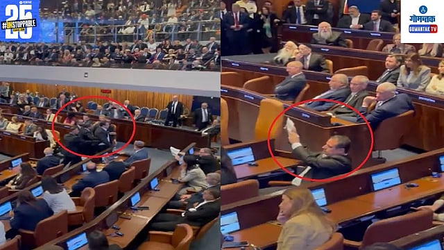 Israeli Parliament Video: अमेरिकेचे राष्ट्राध्यक्ष डोनाल्ड ट्रम्प इस्रायलच्या संसदेला संबोधित करत असताना मोठी खळबळ उडाली. ट्रम्प यांचे भाषण सुरु असतानाच दोन खासदारांनी विरोध प्रदर्शन करत गोंधळ घातला. ट्रम्प यांच्या भाषणादरम्यान झालेला राडा अवघ्या जगाने पाहिला.
