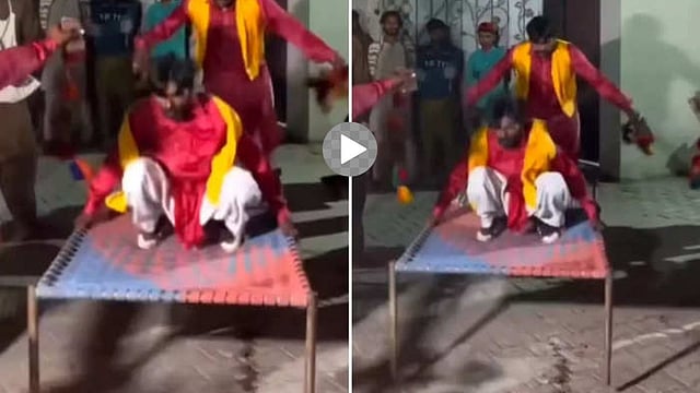 सोशल मीडियावर (Social Media) एक व्हिडीओ व्हायरल होत असून, हा व्हिडीओ पाकिस्तानचा असल्याचा दावा केला जात आहे. या व्हिडीओमध्ये काही लोक डान्स करताना दिसत आहेत. तिथे एक तरुण कॉटवर नाचताना दिसतोय. तर बॅकग्राउंडमध्ये भांगडा संगीत ऐकू येते. यावर तरुण थिरकत आहेत. हा डान्स पाहून सगळेच हैराण झाले आहेत. त्यांचा हा व्हिडीओ सोशल मीडियावर मोठ्या प्रमाणात व्हायरल होत आहे.