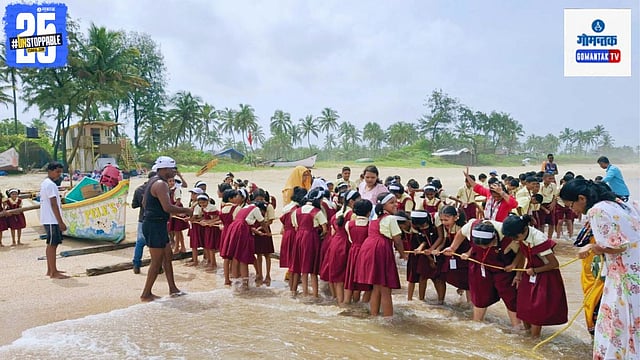 मडगाव येथील महिला नूतन हायस्कूलच्या विद्याभारती या प्राथमिक विभागाचे विद्यार्थी हल्ली वर्गाच्या चार भिंती बाहेरील अनुभव आनंदाने घेताना दिसत आहेत. शेताला दिलेली भेट, पातोळी महोत्सव साजरीकरण अशा उपक्रमानंतर शनिवारी त्यांनी समुद्रकिनाऱ्यावर रापण कशी ओढतात याचा अनुभव घेतला.