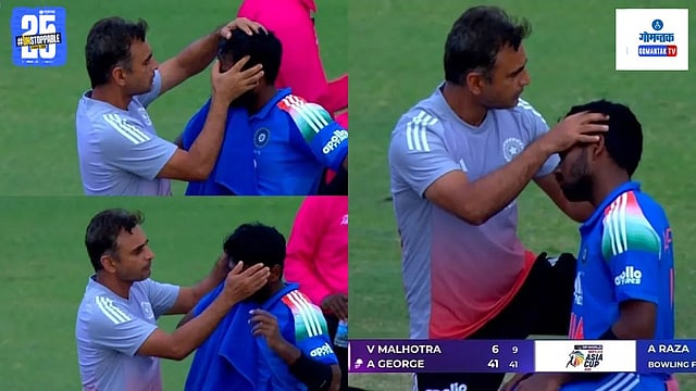 पाकिस्तानकडून 14 वे षटक अली रझाने टाकले. या षटकातील दुसऱ्या चेंडूवर आरोन जॉर्ज मोठा फटका मारण्याच्या प्रयत्नात होता, परंतु चेंडू उसळी घेऊन थेट त्याच्या हेल्मेटला लागला. हेल्मेट असल्यामुळे त्याला मोठी दुखापत झाली नाही, मात्र त्याला वेदना होत असल्याचे स्पष्ट दिसत होते. घटनेनंतर लगेचच भारतीय संघाचे फिजिओ मैदानावर धावले आणि त्यांनी जॉर्जची तपासणी केली. त्याची 'कन्कशन टेस्ट' (Concussion Test) देखील करण्यात आली. डोक्याला चेंडू लागूनही जॉर्जने हिम्मत दाखवली आणि त्याने क्रीजवर टिकून राहण्याचा निर्णय घेतला. या निर्णयामुळे त्याने पुढील काही षटकांत शानदार फलंदाजी केली.
