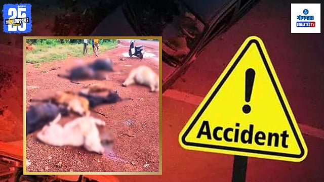 काणकोण: मडगाव - कारवार हमरस्त्यावरील पोळे लोलये येथे अज्ञात वाहनाने ठोकरल्याने अकरा गुरांचा बळी गेला. शुक्रवारी मध्यरात्रीच्या सुमारास ही घटना घडली. ही भटकी गुरे हमरस्त्यावर रात्रीच्या वेळी कळपाने बसली होती. त्यांना वाहनाने ठोकरल्याने ती जागीच गतप्राण झाली.