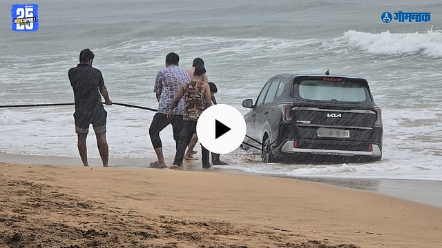 car stuck in sea goa: गोव्याच्या समुद्रकिनाऱ्यावर पर्यटकांनी केलेल्या बेजबाबदार कृत्याची आणखी एक घटना समोर आली आहे. हणजूण समुद्रकिनाऱ्यावर एका पर्यटकाने आपली अवघ्या २० दिवसांपूर्वी खरेदी केलेली 'किया कॅरेन्स' (Kia Carens) गाडी थेट समुद्रात उतरवण्याचा प्रयत्न केला. सुरक्षा रक्षकाने वारंवार रोखूनही त्याने दुर्लक्ष केले, ज्यामुळे त्याची गाडी वाळूत अडकून अंशतः पाण्यात बुडाली.