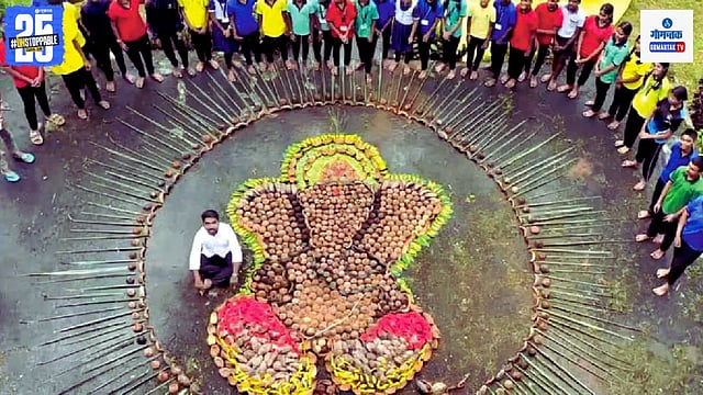 ही भव्य आणि हृदयस्पर्शी रचना टिकाऊपणाच्या संकल्पनेला समर्पित आहे. नारळाच्या झाडाचे बहुआयामी सौंदर्य आणि उपयोगिता यांचा गौरव करत, या कलाकृतीत नारळाच्या शेंगा, पाने, खोड आणि इतर पर्यावरणस्नेही घटकांचा वापर करून एक नयनरम्य आणि अर्थपूर्ण निर्मिती साकारली गेली आहे. ही रचना केवळ दृश्यात्मक सौंदर्यच नव्हे, तर परंपरा आणि पर्यावरणीय जागरूकतेचा सुंदर मिलाफ दर्शवते.