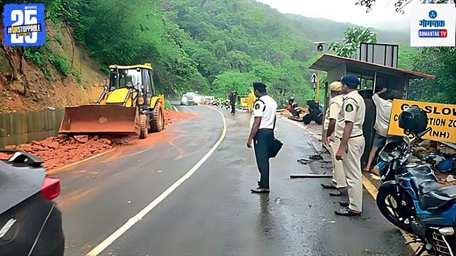 या ठिकाणी एका बाजूने वाहतूक सुरू केली असून लहान वाहने, बसेस तसेच जीवनावश्यक वस्तूंची वाहतूक करणारी वाहने सोडण्यात येत आहेत. घाटावर मुसळधार पाऊस पडत असल्याने वाहने सुरक्षितरित्या सोडण्यासाठी प्रशासनाने वाहतूक पोलिस व कुळे पोलिसांना तैनात केले आहे.