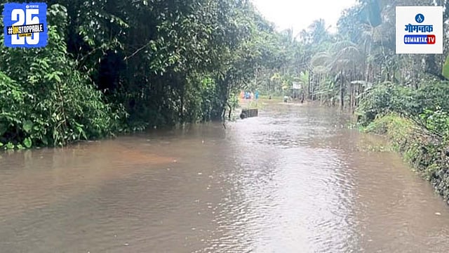 ५.बांबोळी रस्त्यावर मोठ्या प्रमाणात पावसाचे पाणी
