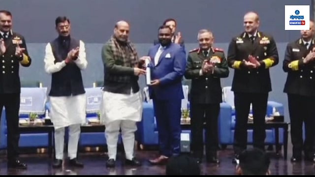 केंद्रीय संरक्षण मंत्री राजनाथ सिंह यांच्या हस्ते गोवा राज्यातील शिगाव येथील तुळशीदास उर्फ सिद्धेश राजाराम खांडेपारकर यांना रक्षामंत्री बहादूर पुरस्कार प्रदान.