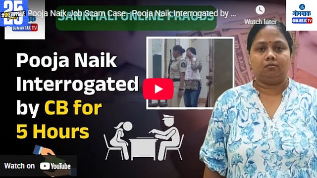 गोव्यात गाजलेल्या पूजा नाईक नोकरी घोटाळा प्रकरणात (Pooja Naik Job Scam Case) गोवा पोलिस गुन्हे अन्वेषण विभागाने (Crime Branch - CB) मुख्य आरोपी पूजा नाईक हिची 5 तास कसून चौकशी केली. मिळालेल्या माहितीनुसार, गुन्हे अन्वेषण विभागाने पूजा नाईक हिला चौकशीसाठी बोलावले होते. सीबीच्या अधिकाऱ्यांनी तिच्याकडे कथित नोकरी घोटाळ्याशी संबंधित अनेक प्रश्न विचारले. तिच्या या चौकशीतून लवकरच मोठे खुलासे होऊ शकतात.