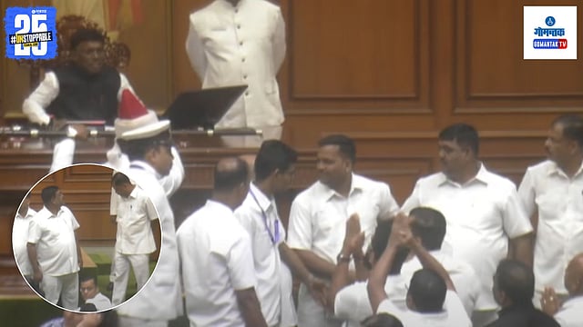 विरोधी पक्षातील आमदार वीरेश बोरकर, व्हेंझी व्हिएगस, क्रूझ सिल्वा, आल्टन डिकॉस्टा, युरी आलेमाव सभापतींच्या हौदात जात जोरदार आवाज उठवला. वीरेश बोरकरांनी मी हात जोडतो, असे म्हणत सभापतींना विनवणी केली. यानंतर बोरकर, आलेमाव यांच्यासह सर्वजण थेट गुडघ्यावर बसून सभापतींना विनंती करु लागले. या दरम्यान, सभातींना हा विषय सरकारचा असल्याचे सांगत विरोधकांना शांत करण्याचा प्रयत्न केला.