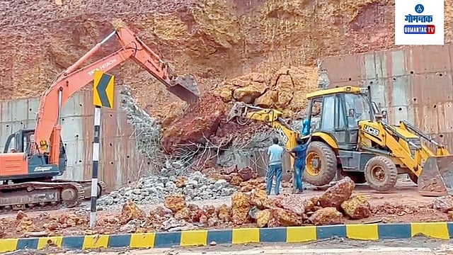 मालपे येथे राष्ट्रीय महामार्गावर दरडी कोसळलेल्या ठिकाणी आज सकाळपासून दोन मोठ्या जेसीबी यंत्रांद्वारे कोसळलेली माती हटविण्याचे काम सुरू झाले आहे.