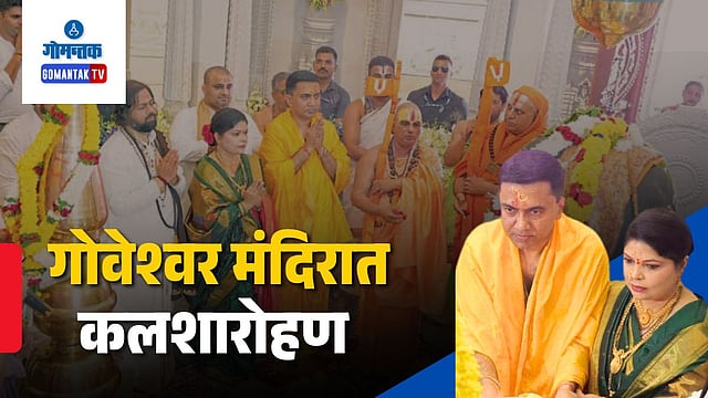 पणजी : जगद्गुरू रामानंदचार्य नरेंद्राचार्यजी यांच्या कल्पनेतून साकारलेल्या बायंगिणी - जुने गोवे येथील भव्य गोवेश्वर महाशिव मंदिरात प्राणप्रतिष्ठा व कलशारोहण सोहळा विधीवत व मोठ्या थाटामाटात झाला. गोव्याचे मुख्यमंत्री डॉ. प्रमोद सावंत व सुलक्षणा सावंत यांच्या हस्ते धार्मिक कार्यक्रम झाले.