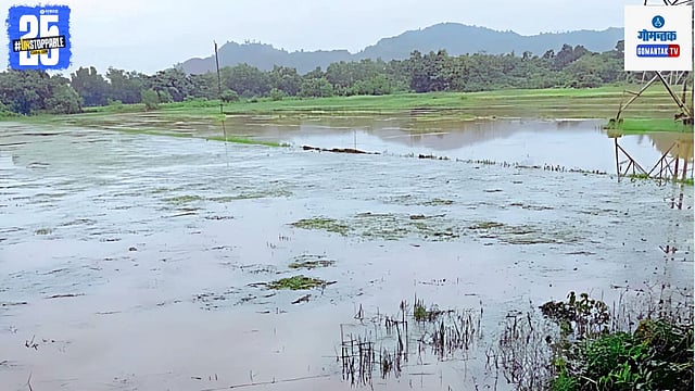 डिचोली: पावसाच्या तडाख्यात शिरगावमधील भातशेतीची धूप झाली असून भाताची रोपे मातीमोल झाली आहेत. गेले चार-पाच दिवस धुमाकूळ घातलेल्या पावसाच्या तडाख्यात शिरगावमधील भातशेती पूर्णपणे पाण्याखाली गेली आहे.