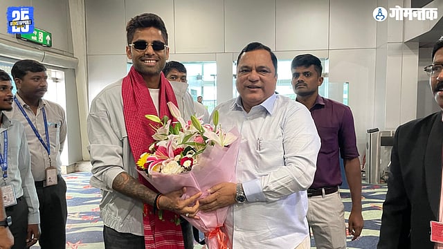 गोवा: भारताच्या टी-20 क्रिकेट संघाचा कर्णधार सूर्यकुमार यादव गोव्यात पोहोचला असून त्याचे दाबोळी विमानतळावर मंत्री माविन गुदिन्हो यांनी स्वागत केले. यावेळी क्रिकेटप्रेमी, स्थानिक राजकीय नेते आणि अधिकारी यांची उपस्थिती पाहायला मिळाली.