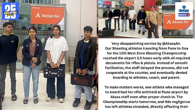 पुणे: विमानतळावर झालेल्या सुरक्षा तपासणीच्या विलंबामुळे सहा नेमबाजांना गोव्यात होणाऱ्या शूटिंग चॅम्पियनशिप स्पर्धेला मुकावे लागले आहे. अकासा एअरच्या शस्त्रे आणि दारूगोळा वाहतुकीबाबतच्या धोरणांबद्दल गोंधळ निर्माण झाल्याने तपासणीला विलंब झाला. गोव्यात होणाऱ्या वेस्टर्न झोन ज्युनियर (अंडर-१८) शूटिंग चॅम्पियनशिपमध्ये भाग घेण्यासाठी सात नेमबाज मंगळवारी (१६ सप्टेंबर) संध्याकाळी पुण्याहून गोव्याला निघाले होते.