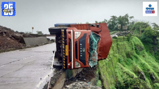 मिळालेल्या माहितीनुसार, कोल्हापूर येथून सावंतवाडीला सिमेंटच्या पत्र्याची पाने घेऊन आयशर ट्रक येत होता. करुळ घाटात असलेल्या दाट धुक्यामुळे चालकाला अंदाज न आल्याने ट्रक घाटातील संरक्षक भिंतीला जाऊन धडकला आणि पलटी झाला. भरधाव असलेला ट्रक दरीच्या टोकावर येऊन थांबला. यामुळे ट्रक चालक आणि क्लिनर थोडक्यात बचावले.