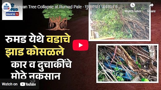 Banyan Tree Collapse at Rumad Pale: रूमड - पाळीत पहाटे चारच्या सुमारास शंभर वर्षे जुना वटवृक्ष कोसळल्यामुळे या दोन कारगाड्या, दोन दुचाक्यांसहीत दोन घरांचे नुकसान झाले.
