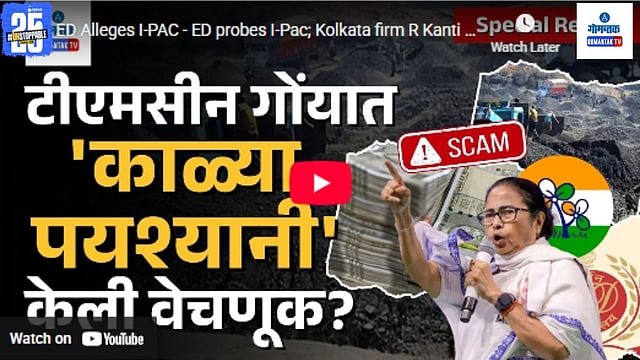 अंमलबजावणी संचालनालयाने (ED) शुक्रवारी खळबळजनक आरोप केला आहे की, निवडणूक रणनीतीकार संस्था 'आय-पॅक'ने (I-PAC) २०२१-२२ च्या विधानसभा निवडणुकीदरम्यान गोव्यात तृणमूल काँग्रेससाठी (TMC) काम करताना सुमारे २० कोटी रुपये खर्च केले. ई़डीच्या दाव्यानुसार, हा पैसा पश्चिम बंगालमधील बेकायदेशीर कोळसा उत्खननातून मिळालेला गुन्हेगारीचा पैसा (Proceeds of Crime) आहे. हा निधी कोलकाता येथील 'आर. कांतीलाल' आणि इतर काही कंपन्यांमार्फत वळवून गोव्यातील निवडणुकीत वापरण्यात आला, असा दावा तपास यंत्रणेने केला आहे. या आरोपामुळे आता गोव्यातील राजकीय वर्तुळात मोठी खळबळ उडाली आहे.