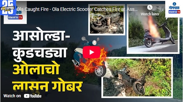 गोव्यात पुन्हा एकदा एका ओला इलेक्ट्रिक स्कूटरला (Ola Electric Scooter) आग लागल्याची गंभीर घटना समोर आली आहे. बुधवारी (२२ ऑक्टोबर) असोल्डा (Assolda) ते कुडचडे (Curchorem) या रस्त्यावर ही घटना घडली. भर रस्त्यातच स्कूटरमधून अचानक धूर निघू लागला आणि काही वेळातच संपूर्ण स्कूटरने पेट घेतला.