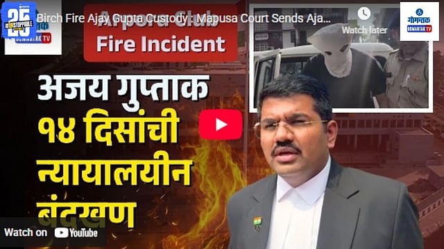 गोव्यातील बहुचर्चित 'बर्च फायर' (Birch Fire) प्रकरणातील मुख्य संशयित अजय गुप्ता याला म्हापसा न्यायालयाने 14 दिवसांची न्यायालयीन कोठडी सुनावली. यापूर्वी, पोलीस कोठडीत असलेल्या गुप्ताची चौकशी पूर्ण झाल्यानंतर त्याला न्यायालयात हजर करण्यात आले होते. दोन्ही बाजूंचा युक्तिवाद ऐकल्यानंतर, म्हापसा न्यायालयाने गुप्ताला 14 दिवसांसाठी कोठडीत पाठवण्याचे आदेश दिले. या आगीच्या घटनेत मोठ्या प्रमाणावर मालमत्तेचे नुकसान झाले असून, यामुळे गोव्यातील पर्यटन क्षेत्रात सुरक्षेचा प्रश्न पुन्हा एकदा ऐरणीवर आला आहे. पोलीस आता या प्रकरणातील इतर धागेदोरे शोधण्याचा प्रयत्न करत आहेत.