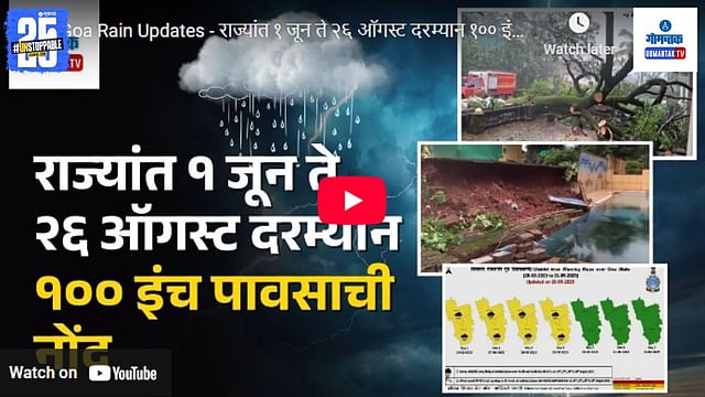 गोव्यात गेल्या तीन महिन्यात (०१ जून ते २६ ऑगस्ट) या काळात जवळपास १०० इंच पावासाची नोंद झाली आहे. ऑगस्ट पूर्ण होण्यासाठी अद्याप चार दिवसांचा अवधी असून, पुढील चार दिवसांसाठी हवामान खात्याने यलो अलर्ट जारी केला आहे. या काळात राज्यात मुसळधार पावसाची शक्यता वर्तविण्यात आली आहे. दरम्यान, गोव्यात मे पासूनच पावसाने सुरुवात केली आहे. मे च्या अखेरीस राज्यात मुसळधार पाऊस झाला होता.