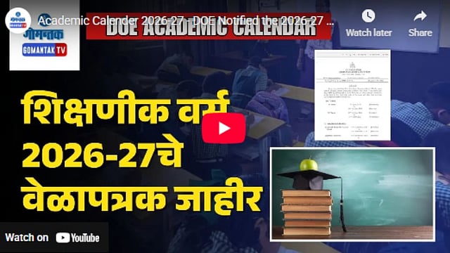 गोव्याच्या शिक्षण संचालनालयाने (DOE) 2026-27 या नवीन शैक्षणिक वर्षाचे अधिकृत वेळापत्रक जाहीर केले असून, त्यानुसार राज्यातील शाळांची पहिली घंटा 6 जून 2026 रोजी वाजणार आहे. हे नवीन शैक्षणिक वर्ष 1 मे 2027 पर्यंत सुरु राहणार आहे. संचालनालयाने प्रसिद्ध केलेल्या या कॅलेंडरमध्ये सुट्ट्यांचे नियोजनही स्पष्ट करण्यात आले असून, यंदा गणेश चतुर्थीसाठी 3 ते 9 सप्टेंबर दरम्यान सात दिवसांची सुट्टी देण्यात आली आहे. दिवाळीची दीर्घ सुट्टी 19 ऑक्टोबर रोजी सुरु होऊन 7 नोव्हेंबर 2026 पर्यंत चालेल, तर नाताळची सुट्टी 24 डिसेंबर ते 2 जानेवारी 2027 या कालावधीत असेल. संपूर्ण शैक्षणिक वर्षात 200 कार्यालयीन दिवस पूर्ण करणे शाळांसाठी अनिवार्य असून, 3 मे 2027 पासून विद्यार्थ्यांची उन्हाळी सुट्टी सुरु होईल.