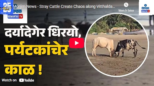 उत्तर गोव्यातील प्रसिद्ध पर्यटन स्थळ असलेल्या मोरजी (Morjim) येथील विठ्ठलदासवाडा (Vitthaldaswada) किनारपट्टीवर भटक्या गुरांमुळे (Stray Cattle) सध्या मोठ्या प्रमाणात गोंधळ आणि समस्या निर्माण झाली आहे. या गुरांनी किनाऱ्यासह रस्त्यांवर ठाण मांडल्याने वाहतुकीत अडथळा येत असून, पर्यटकांना आणि स्थानिकांना त्रास सहन करावा लागत आहे.