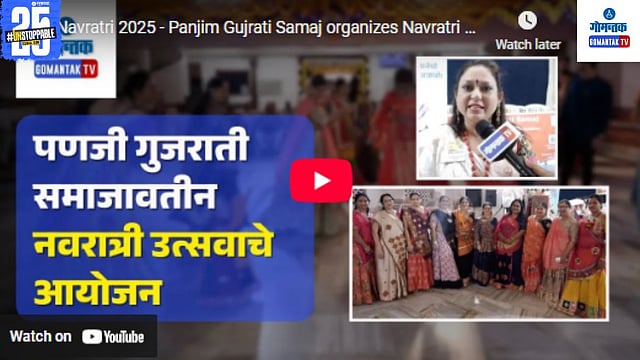 पणजीमध्ये गुजराती समाजातर्फे नवरात्री उत्सव 2025 मोठ्या उत्साहात आयोजन केले आहे. या उत्सवात मोठ्या संख्येने गुजराती समुदायातील लोकांनी सहभाग घेतला. गरबा आणि दांडियाच्या तालावर तरुणाईसह सर्वच वयोगटांतील लोक थिरकताना दिसले. नवरात्रीच्या नऊ दिवसांच्या काळात पणजी येथील गुजराती समाजाने देवी दुर्गेची पूजा-अर्चा करुन भक्तिमय वातावरणात या उत्सवाचे आयोजन केले.