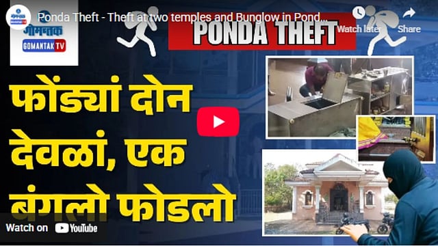 फोंडा परिसरात चोरट्यांनी एकाच रात्रीत धुमाकूळ घालत तीन ठिकाणी धाडसी चोऱ्या केल्या आहेत. उसगाव येथील भवानी सिद्धपुरुष मंदिरातील खिडकीचे ग्रिल्स कापून चोरट्यांनी देवीचे पुरातन सोन्याचे दागिने आणि दानपेटीतील रोकड लांबवली. सीसीटीव्हीमध्ये हेल्मेट घातलेला एक संशयित कैद झाला आहे. दुसऱ्या घटनेत, ढवळी येथील सत्यनारायण मंदिराची दानपेटी फोडून १० हजार रुपये पळवले. तर तिसऱ्या घटनेत, बोरी येथील माजी सरपंच लुईस कॉस्ता यांचा बंगला फोडून मोठा ऐवज लंपास केला. चोरीवेळी बंगल्यात कोणीही नव्हते. एकाच रात्री झालेल्या या तीन मोठ्या चोऱ्यांमुळे पोलिसांसमोर तपासाचे मोठे आव्हान उभे ठाकले आहे.