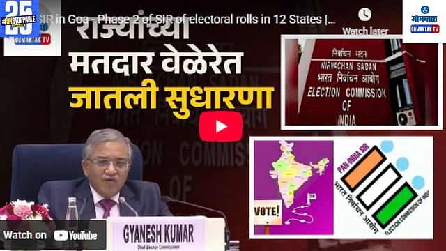 गोव्यासह देशातील अनेक राज्यांमध्ये पुढील काही वर्षांत विधानसभा निवडणुका (Assembly Election) होणार आहेत. या पार्श्वभूमीवर केंद्रीय निवडणूक आयोगाने सोमवारी (27 ऑक्टोबर) एक महत्त्वपूर्ण निर्णय घेतला. बिहारमधील मतदारांच्या यादीची विशेष सुधारणा मोहीम ('SIR' - Special Intensive Revision) यशस्वी झाल्यानंतर आता गोव्यासह देशातील 11 राज्ये आणि केंद्रशासित प्रदेशांमध्ये या मोहिमेचा दुसरा टप्पा राबवला जाणार आहे.