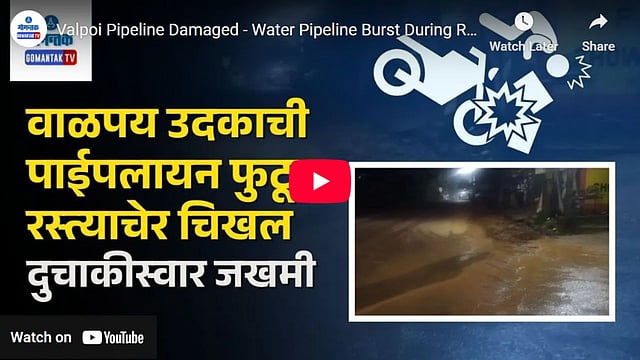 वाळपई शहरात गेल्या काही दिवसांपासून पाणीपुरवठा खात्यातर्फे नवीन पाण्याची पाईपलाइन टाकण्याचे काम सुरू असताना, संध्याकाळी वाळपई ठाणे मार्गावरील म्हाऊशीकडे जाणाऱ्या रस्त्यावर मोठी दुर्घटना घडली. जेसीबीने रस्ता खोदत असताना पाण्याची पाईपलाइन फोडल्यामुळे मोठ्या प्रमाणात पाण्याची नासाडी झाली. या वाया गेलेल्या पाण्यामुळे रस्ता चिखलमय झाला. परिणामी, चिखलामुळे दोन दुचाकीस्वार घसरून किरकोळ जखमी झाले. रात्रभर पाणी वाहत असल्याने नागरिकांनी पाणीपुरवठा खात्याच्या कामावर आणि झालेल्या असुविधेवर तीव्र संताप व्यक्त केला आहे.