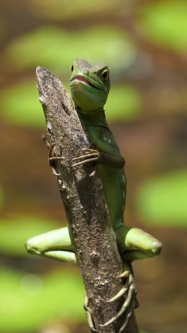 बॅसिलिस्क सरडा पाण्यावर धावू शकतो, म्हणून त्याला “जिझस लिझर्ड” असेही म्हणतात. त्याच्या मागच्या पायांची खास रचना यासाठी कारणीभूत आहे.