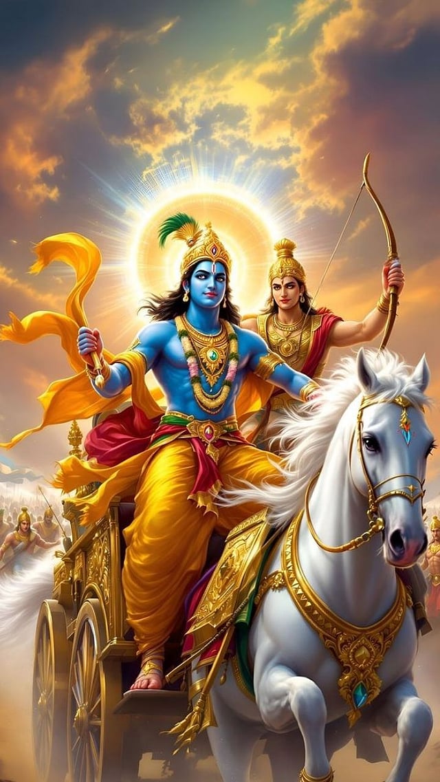 याव्यतिरिक्त भगवान श्रीकृष्णच्या हातात तलवार, गदा ही शस्त्रे दिसतात.