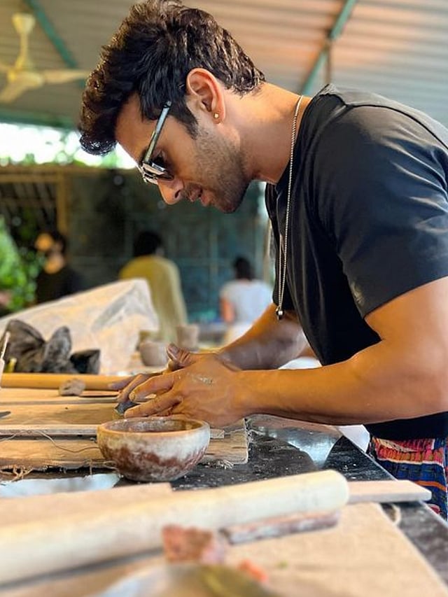 येथे त्याने पॉटरी बनवण्याचा देखील प्रयत्न केला, फोटो तो चिखलापासून वस्तू बनवताना दिसत आहे.
