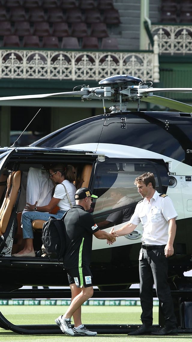 वॉर्नर भावाच्या लग्नासाठी हंटर वॅलीमध्ये गेला होता. त्यामुळे तेथून त्याला सिडनीच्या मैदानात हेलिकॉप्टरमधून आणण्यात आले.