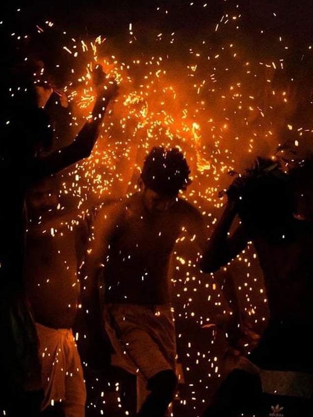 खाली आंब्याचे ताळे घेऊन नाचणाऱ्यावरही या ठिणग्या पडतात.