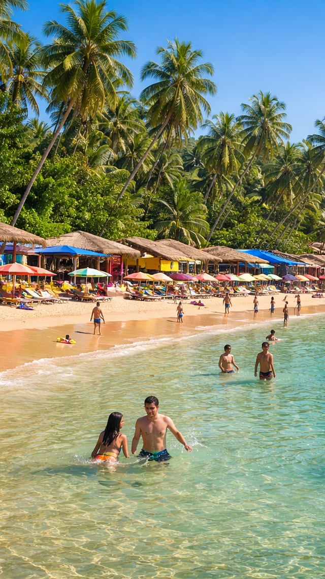 लांबच लांब पसरलेली सोनेरी वाळू आणि नारळांच्या झाडांची रांग यामुळे हा किनारा अधिकच आकर्षक दिसतो.