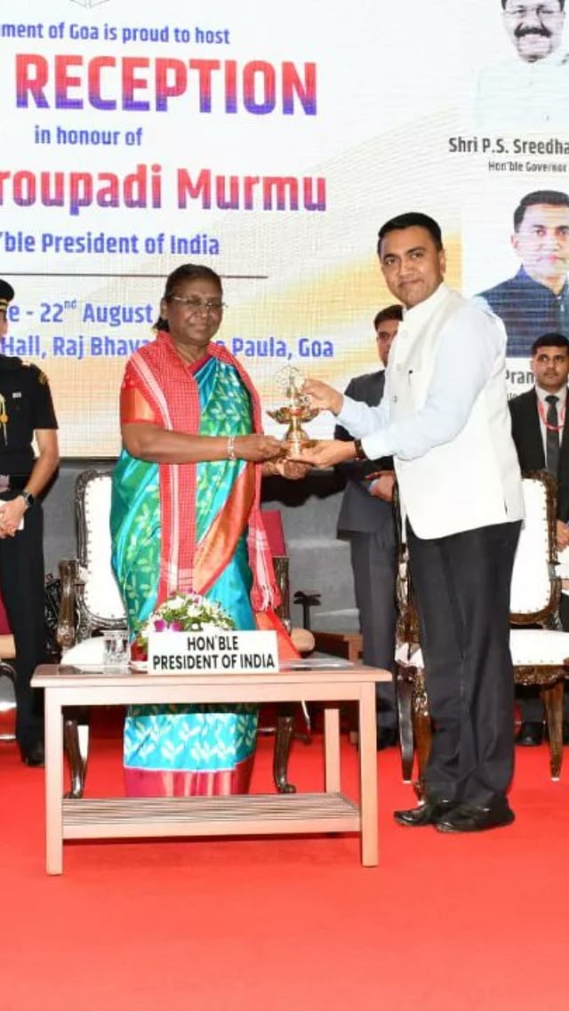 राष्ट्रपती द्रौपदी मुर्मू राष्ट्रपती झाल्यानंतर प्रथमच गोव्यात आल्या आहेत. यानिमित्ताने त्यांचा जाहीर नागरी सत्कार करण्यात आला.