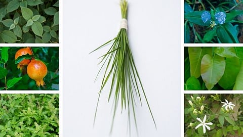 सकाळच्या प्रसन्न वातावरणात घराच्या परसदारात किंवा आसपास असलेल्या एकवीस प्रकारच्या पत्री गोळा करताना कित्ती आनंद व्हायचा! प्रथम गोळा केल्या जायच्या दूर्वा! तरतरीत तीन पानांची एक-एक काडी खुडून एकवीस दूर्वांची जुडी बांधली जायची. ज्याला आपण दूर्वा म्हणतो, ते एक प्रकारचं गवतच! या दूर्वा अतिशय औषधी! उष्णता, पित्त, बद्धकोष्ठता, रक्तशुद्धी अशा अनेक विकारांवर दूर्वा अत्यंत गुणकारी! दूर्वांना मुळं भरपूर! म्हणून ती शतमूला या नावानंदेखील ओळखली जाते. पानं वाळली तरी मुळं जिवंत राहतात, म्हणून ती चिरंजीव! याशिवाय हरळी म्हणूनही आपल्याला ती परिचित आहेच.