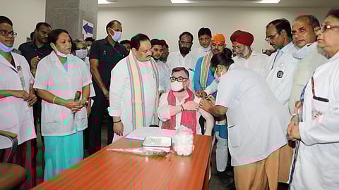 केंद्र-चालित लेडी हार्डिंग मेडिकल कॉलेज आणि हॉस्पिटल (LHMC) च्या कॅम्पसमधील ईआर लसीकरण केंद्रात डॉक्टर, परिचारिका आणि इतर आरोग्य कर्मचार्यांच्या गटासह नड्डा नंतर मेळाव्याला संबोधित करत होते.