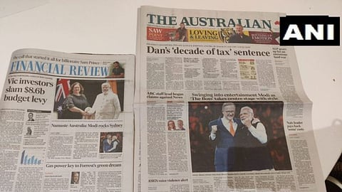 PM Narendra Modi’s Photo on the front pages of Australian newspapers: पंतप्रधान नरेंद्र मोदींचे सध्या ऑस्ट्रेलिया दौऱ्यावर आहेत. ऑस्ट्रेलियन वृत्तपत्रांच्या पहिल्या पानांवर पंतप्रधान नरेंद्र मोदींचे फोटो छापले आहे. आज पंतप्रधान नरेंद्र मोदी यांनी ऑस्ट्रेलियातील मंदिरांवर झालेल्या हल्ल्याचा मुद्दा पंतप्रधान अँथनी अल्बानीज यांच्याकडे उचलून धरल्याचे म्हटले आहे. याशिवाय ऑस्ट्रेलियातील फुटीरतावादी घटकांच्या कारवायांवरही चर्चा करण्यात आली आहे.