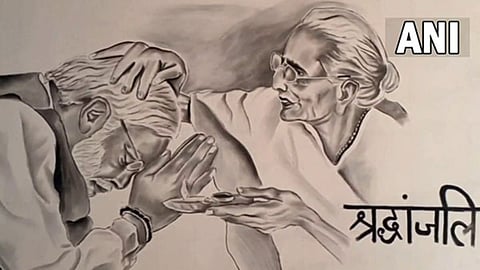 उत्तर प्रदेशातील अमरोहा येथील स्केच आर्टिस्ट झुहैब खान यांनी पंतप्रधान मोदींच्या आई हीराबेन यांच्या निधनावर स्केच बनवून त्यांना श्रद्धांजली वाहिली. झुहैबने पीएम मोदी आणि हीराबेन यांचा एकत्र फोटो बनवला. पंतप्रधान मोदींच्या आई हीराबेन यांचे शुक्रवारी 30 डिसेंबर सकाळी निधन झाले. त्या 100 वर्षांच्या होत्या. पेन्सिल स्केचमध्ये पीएम मोदी (PM Modi) आईला हात जोडून अभिवादन करताना दिसत आहेत. आई त्यांना आशीर्वाद देत आहे. स्केचच्या खाली 'ट्रिब्युट' हा शब्दही लिहिला आहे.