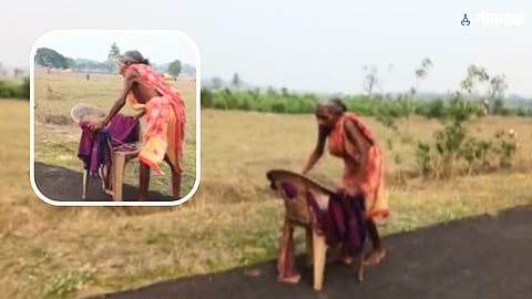 ओडिशातील तापमान 30 अंशांच्या वर पोहोचलेला आहे. राज्याच्या अनेक भागात सध्या कडक उन्हाचा तडाखा जाणवत आहे. अशा परिस्थितीत जीर्ण शरीर असलेली वृद्ध महिला आपल्या हक्कासाठी अशा प्रकारे लढताना पाहणे खरोखरच वेदनादायी आहे. वयोमानानुसार या महिलेचे शरीर अशक्त झाले आहे, त्यामुळे ती खुर्चीचा आधार घेऊन चालत आहे.