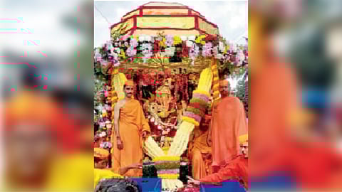 Goa Ganpati Visarjan: समर्थगड-दवर्ली येथील मडगावचा राजा म्हणून प्रसिद्ध असलेल्या 21 दिवसीय गणपतीचे विसर्जन खारेबांध तळीत काल उत्साहाने करण्यात आले. यावेळी स्थनिक मुलांनी ढोलताशांची कला सादर केली. समर्थगडपासून सायंकाळी 4.30 वाजल्यापासून गणपती विसर्जन मिरवणुकीला दवर्ली येथून प्रारंभ करण्यात आला. बाप्पांचा रथ आकर्षक फुलांनी सजविलेला होता.