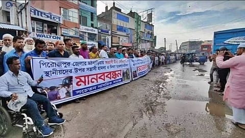 बांगलादेशातील पिरोजपूर जिल्ह्यातील मठबरिया येथे धरणाचे बांधकाम सुरू आहे. बांधकामात अडथळा आणल्याचा आरोप करून येथे काम करणाऱ्या चिनी लोकांनी स्थानिक रहिवाशांवर हल्ला केल्यानंतर लोक रस्त्यावर उतरले. आरोप मागे घेण्याच्या मागणीसाठी लोकांनी मानवी साखळी तयार करून चीनचा निषेध केला. (Bangladeshi citizens protested against Chinese people)